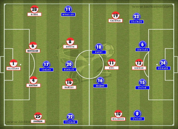Không có gì kinh ngạc khi đó là thời điểm đội khách chơi hay nhất. Một khi Arsenal ổn định được vị trí và kết hợp được bóng thì các cầu thủ đội khách đã kịp lùi về và củng cố xong hệ thống phòng thủ của họ. Arsenal chơi trong phạm vị khá hẹp để tận dụng mối liên kết tuyệt trần giữa các tiền vệ của họ với Giroud.